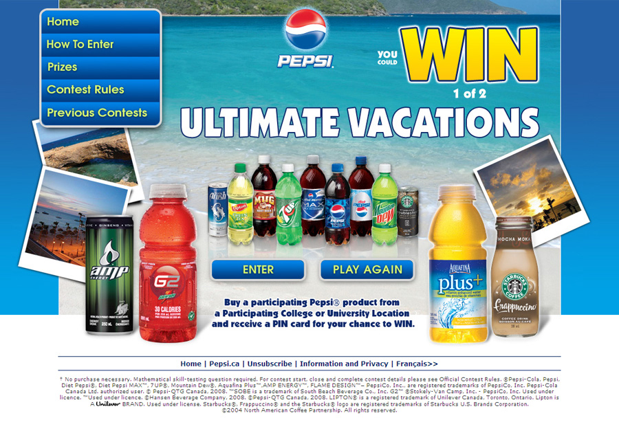 • Pepsi® U Play Stakes ~ design, Flash animation & development (HTML & CSS) (for Corvision)